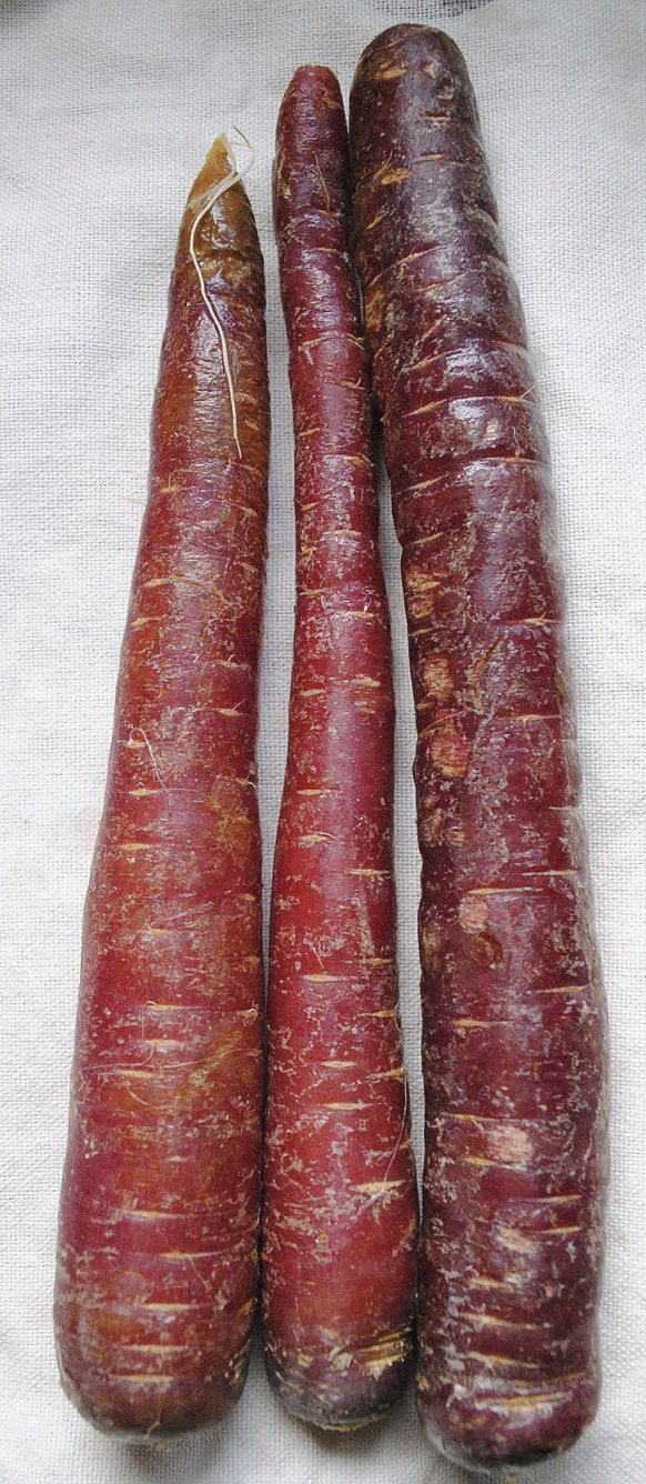 So I begin with purple. I made a list of every purple or nearly purple vegetable that I knew of. In some instances, a few might be called “red,” or some “red” vegetables are in fact more purple looking, so I have included them in my list. In the process, I discovered a few more, though I might have difficulty finding them in the store.
