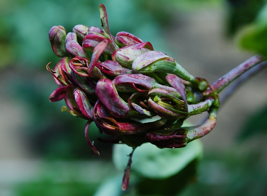 I discovered that aphids cause the flowers to look like “witches brooms,” aptly named as the flower buds look like curved broom heads.